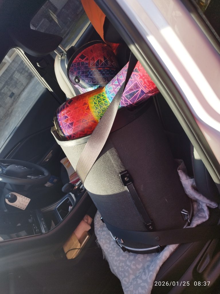 久しぶりに、助手席まで満タンにたいこ🪘を積み込み、いつも個別対応で行く、パームシティーのカラオケレインボーさまへGO!