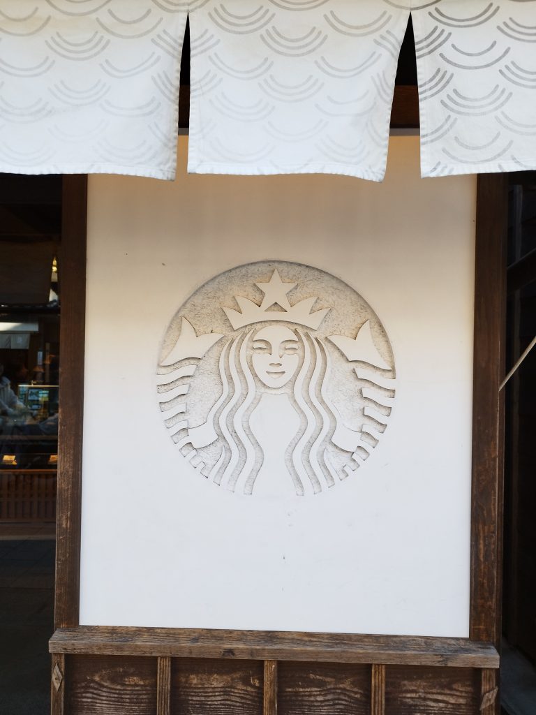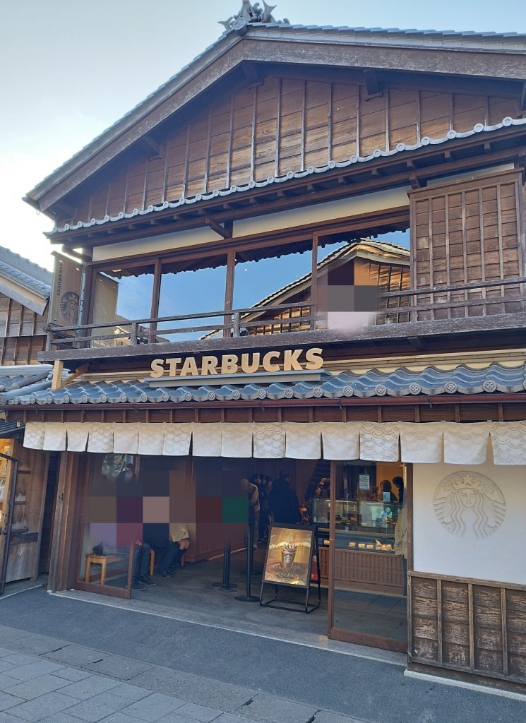 古い町並み 景観にマッチした、白いスターバックスコーヒー✨