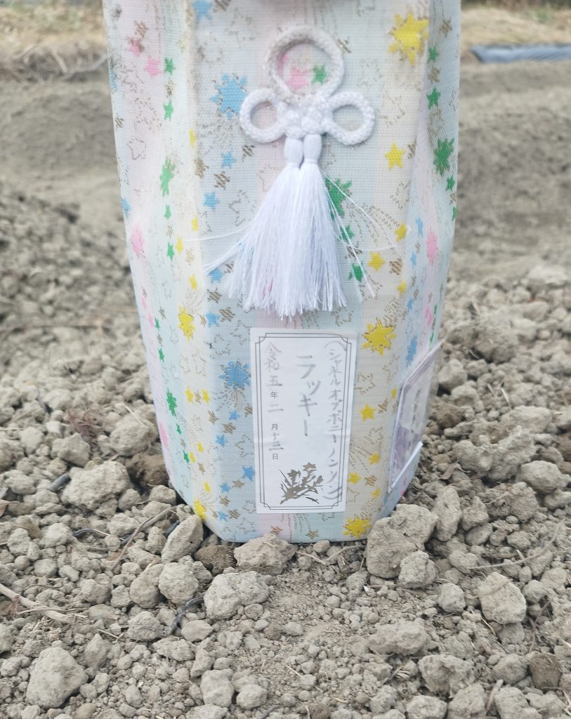 今回、もう3年経ったので、小さいお骨入れに入れて、残りの骨骨ちゃんを、新しい畑に散骨し自然に・土に還してあげました🌿