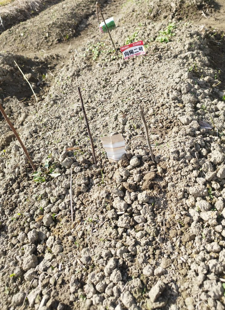 新しい畑に、野菜のタネを蒔きました。
