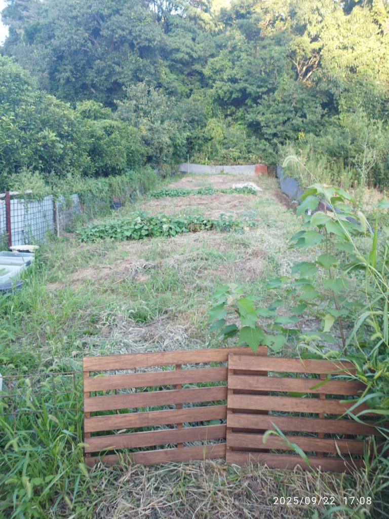 午後からは、すのこベッドを解体し、そのすのこに防腐剤を塗り、山の畑にはアライグマが入ってきているので、入口をふさぐためのゲートにしました✨