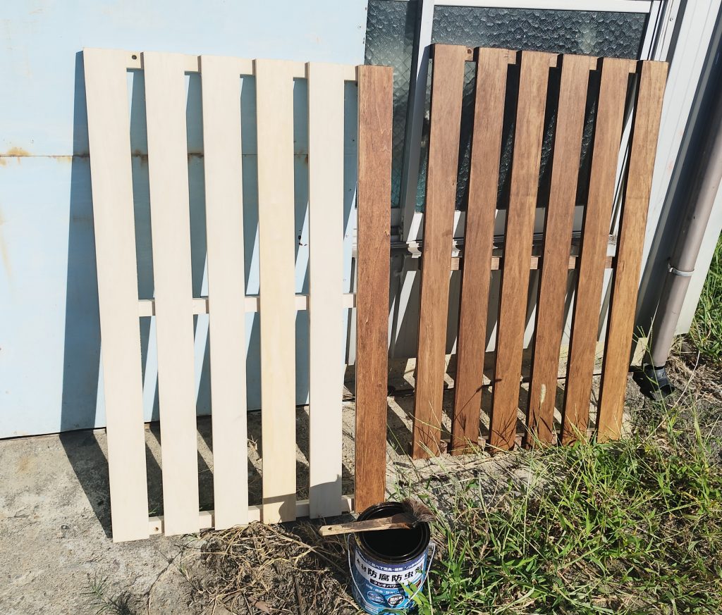 以前、防腐剤を塗ったことがあるから、今回はスイスイ~とサクサク作業も進みました。何事も経験に勝るものなしですな~😊👍