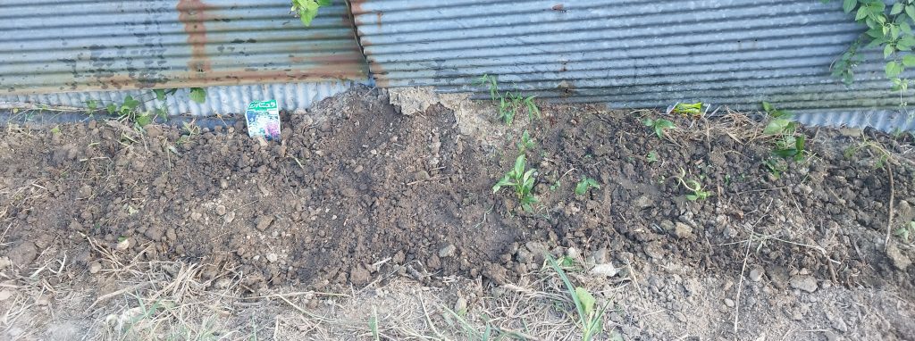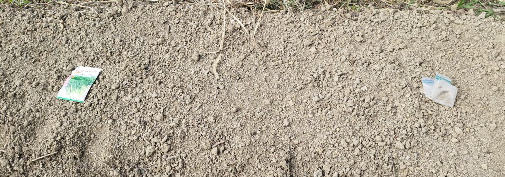 右からクリムソンクローバー、百日草、カンパニュラ、キンセンカを蒔きました✨