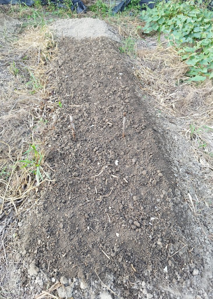 南側に、母が頼んで作ってもらった最後の有機の大きいにんにく16個。真ん中に自然栽培の私のにんにくを29個やったか?。。。植えました。上手く育つのか、楽しみです。