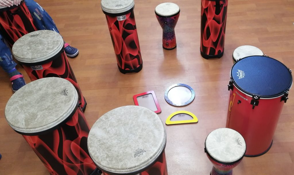 個別や少人数でのたいこの活動“ドラムテーブルアクティビティー”